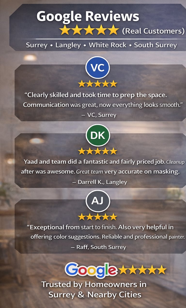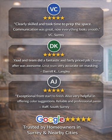 Yaad The Painter provides professional interior and exterior painting services with a focus on quality, cleanliness, and peace of mind. We work with homeowners and small businesses across Surrey, Langley, White Rock, Delta, and Richmond. Every project is handled with care, proper preparation, and attention to detail.